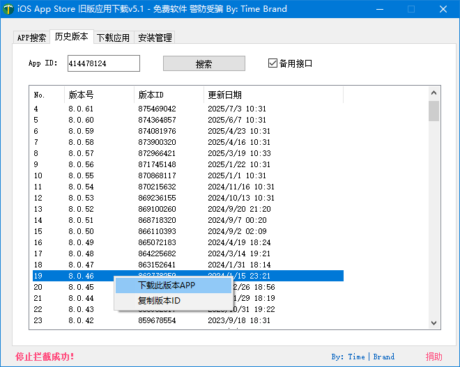 比如我要下载8.0.46版本,直接在版本号这里点击右键会出现菜单,点击下载此版本app