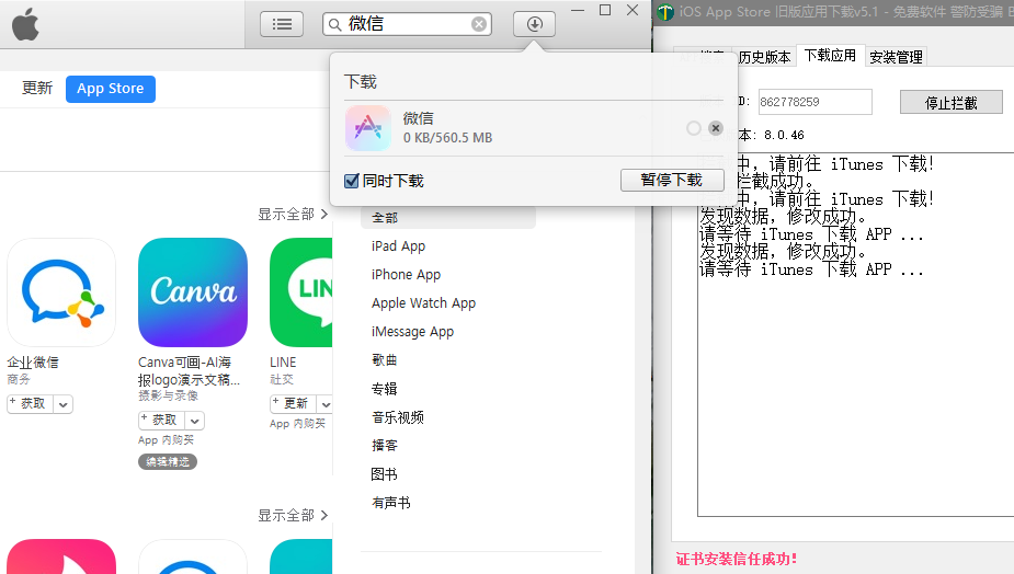 下载完app,iTunes和iOS旧版应用下载v5.1就可以退出了。