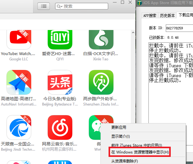 此时已完成app的下载。在app图标点右键找到-在windows资源管理器中显示,打开就是app的存放目录。